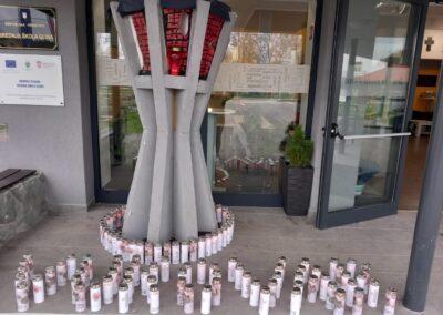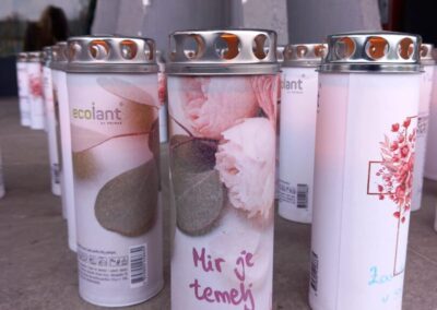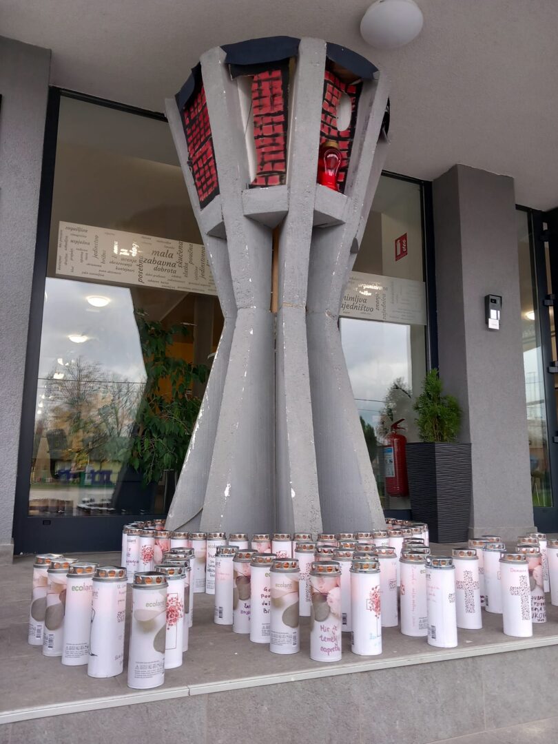 Oslikane eko lampione Ecolant, koje je donirala tvrtka Primax d.o.o. iz Slavonskog Broda, posložili smo uz svoju maketu Vukovarskog vodotornja i u tišini promislili o ispisanim porukama. Zahvaljujemo tvrtci Primax d.o.o. na donaciji.
