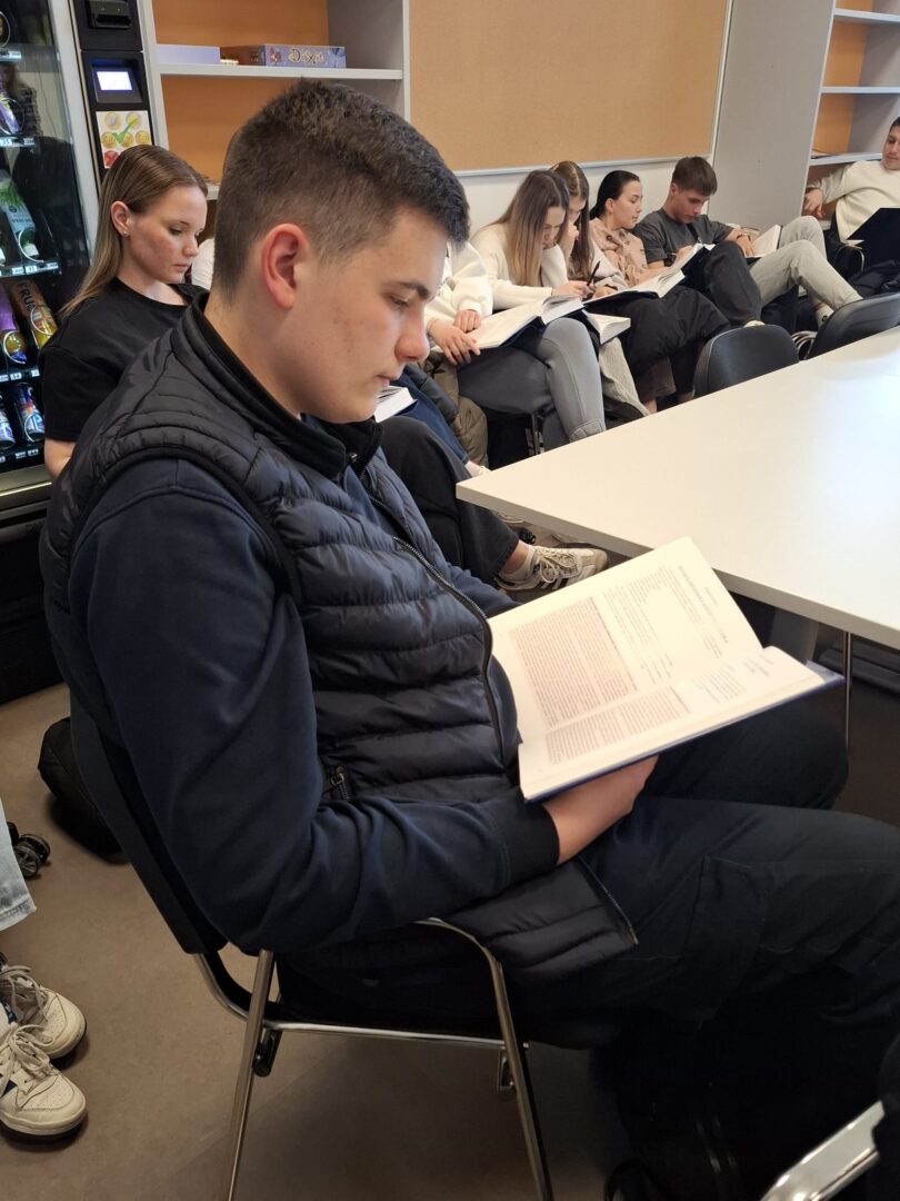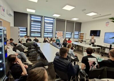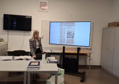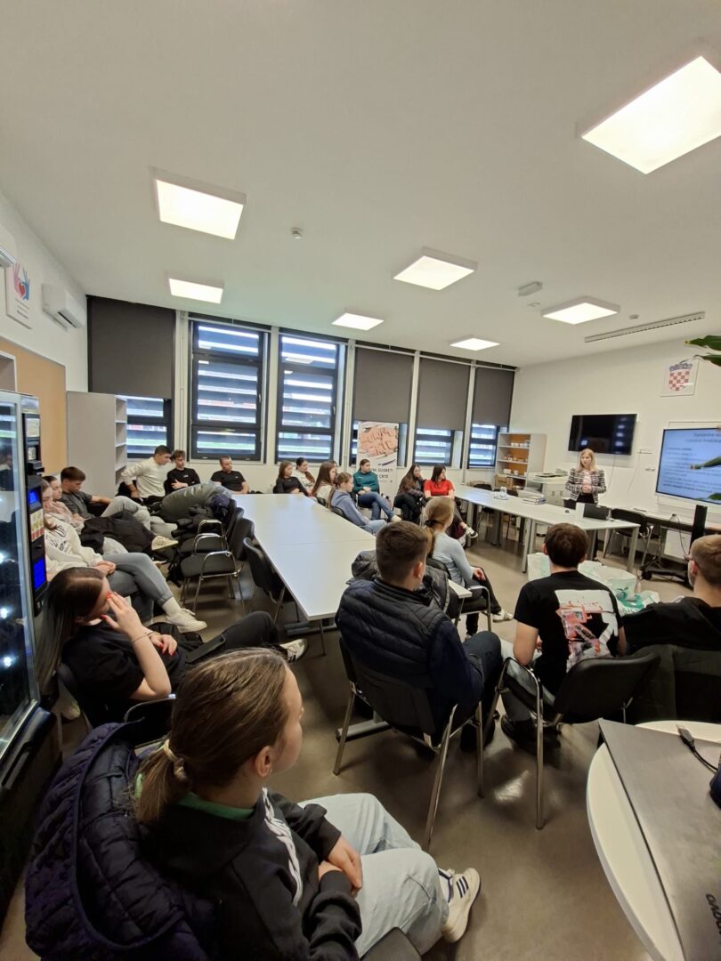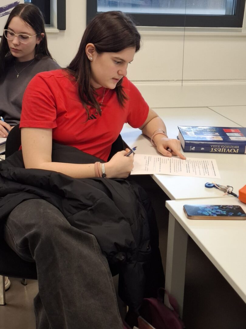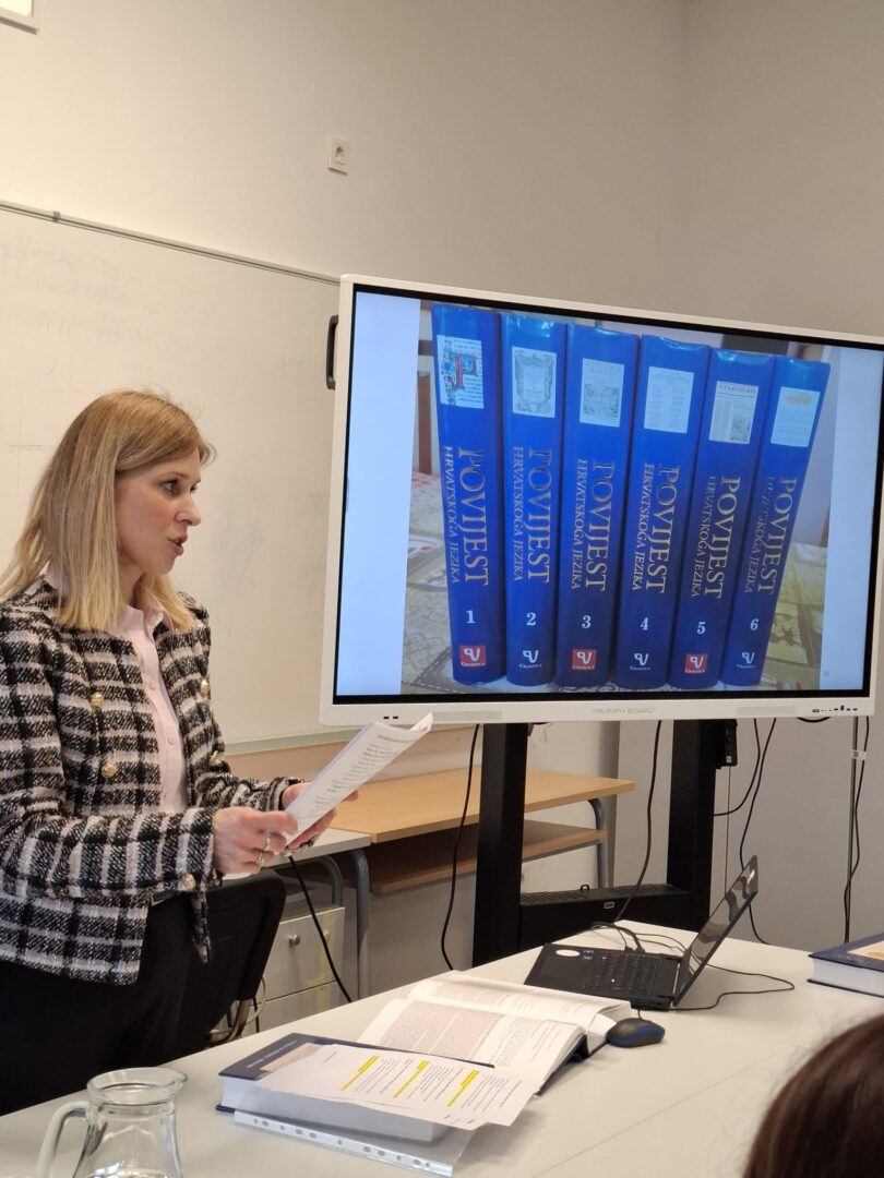 U petak 20. ožujka 2026. predstavnica Croatice (Društvo za promicanje hrvatske kulture i znanosti) održala je predavanje o povijesti hrvatskog jezika koje je bilo namijenjeno učenicima 1.a i učenicima koji su se natjecali na školskoj razini poznavanja hrvatskog jezika. Predavanjem je podsjetila učenike na najvažnije trenutke hrvatske jezične povijesti, a u drugom dijelu predavanja održana je radionica. Učenici su istraživanjem stručne literature uočili pojedinosti promjena jezika uvjetovanih tadašnjim političkim stanjem. Ovom aktivnošću obilježili smo Mjesec hrvatskog jezika te osvijestili važnost očuvanja materinskog jezika.